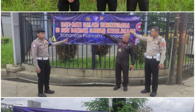 Satlantas Polresta Tangerang Pasang Spanduk Imbauan di Titik Rawan Kecelakaan Pasar Kemis