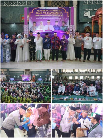 Daerah | • September 11, 2025 • 5 Dilihat • Polresta Tangerang Bersama Forkopimda Peringati Maulid Nabi dengan Tablig dan Baksos, Dihadiri Ribuan Jama’ah Kabupaten Tangerang | wartakum7.com, – Polresta Tangerang bersama Pemerintah kabupaten Tangerang dan Kodim 0510...