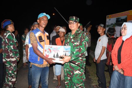 Selain melakukan pengecekan kesiapsiagaan personel, Dandim 0815/Mojokerto juga turut menyerahkan bantuan kepada perwakilan warga masyarakat serta anggota jaga pos sebagai bentuk perhatian dan dukungan moril kepada petugas di lapangan yang melaksanakan tugas pengamanan malam tahun baru.