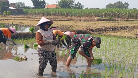 Dalam kegiatan tersebut, Sertu Sono mendampingi pemilik lahan seluas 0,3 hektare, Tarsueb, yang tergabung dalam Kelompok Tani (Poktan) Tani Utomo. Untuk jenis padi yang ditanam varietas Inpari 32, yang dikenal memiliki produktivitas tinggi serta tahan terhadap berbagai hama dan penyakit.