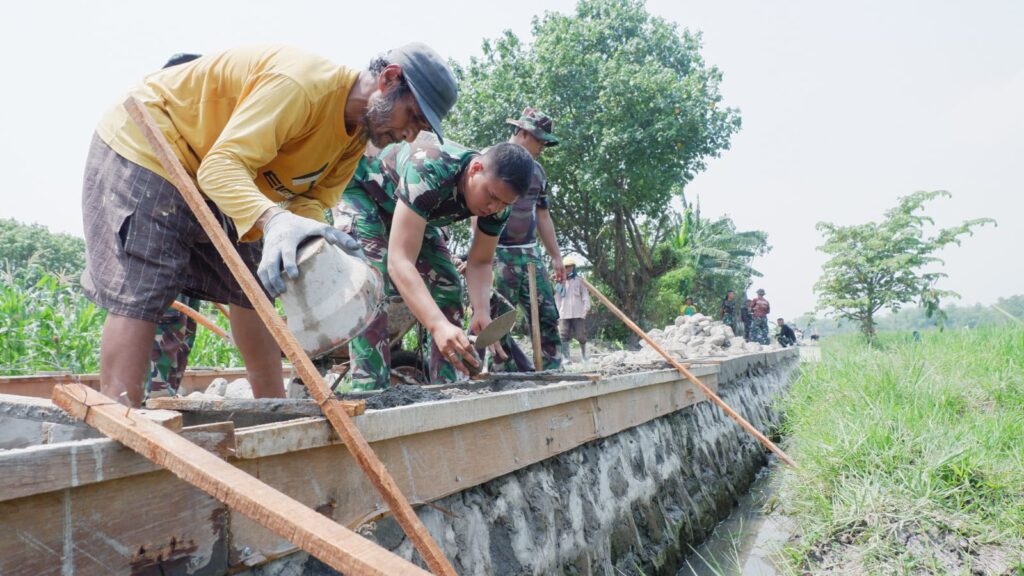 Mojokerto, wartakum7.com. – Program TNI Manunggal Membangun Desa (TMMD) ke-126 Kodim 0815/Mojokerto terus menunjukkan progres positif di Desa Sumbertanggul, Kecamatan Mojosari, Kabupaten Mojokerto, Kamis (09/10/2025). Seiring berjalannya waktu, semangat gotong royong antara prajurit TNI dan warga setempat kian terasa dalam pengerjaan sejumlah sasaran fisik, salah satunya pembangunan Tanggul Penahan Tanah (TPT) yang kini telah mencapai 25 persen dari total target pengerjaan.