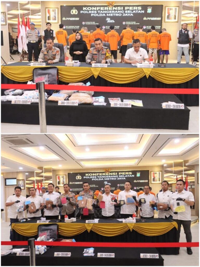 Hal ini disampaikan Wakapolres Tangsel, Kompol Muhibbur RA., S.H., M.H., CPHR., CBA., dalam konferensi pers yang digelar di Aula Guyub Polres Tangsel, Selasa (25/11/2025). Hadir dalam kegiatan tersebut Kasat Resnarkoba AKP Pardiman, S.H., M.H. serta Kasi Humas AKP Agil Sahril, S.H.