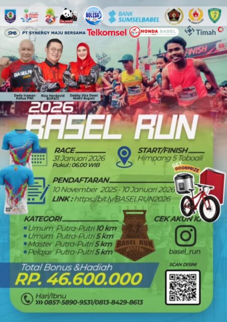 “Lintasan rute Basel Run 2026 yang akan dilalui adalah jalan di kawasan Batu Belimbing dan Pantai Kelisut Toboali. Vibes larinya akan lebih seru sambil menikmati objek wisata di Bangka Selatan,” jelas Dedy Irawan selaku Ketua PWI Bangka Selatan.