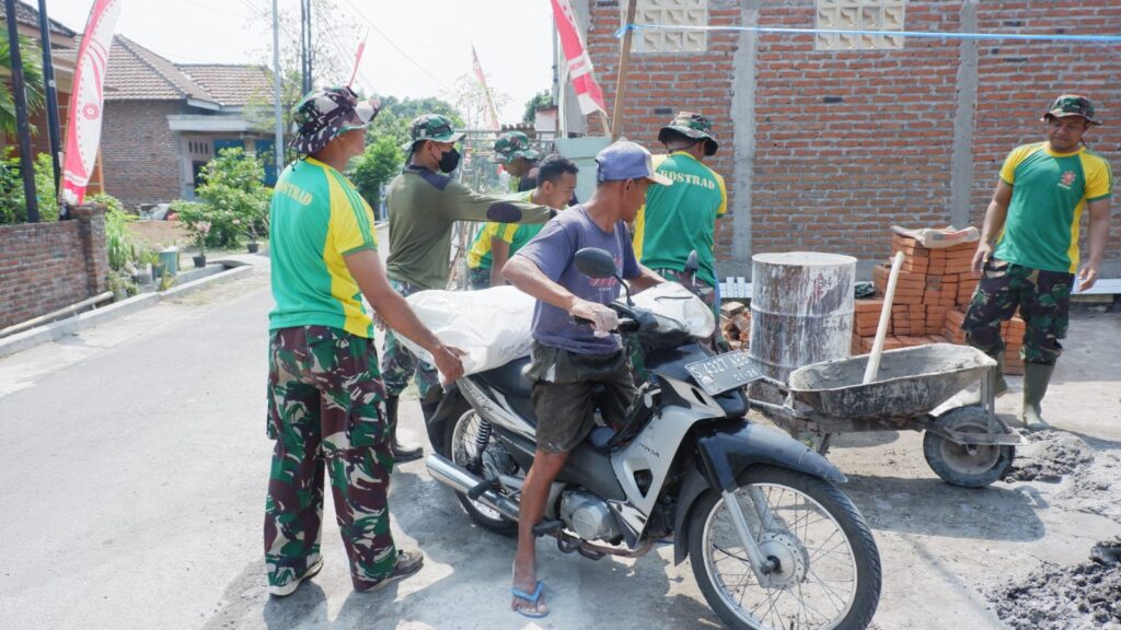 Dengan penuh semangat, para prajurit dan warga tampak kompak mengaduk semen, mengangkut pasir, serta memperbaiki dinding dan atap mushola. Kegiatan gotong royong menjadi simbol nyata kemanunggalan antara TNI dan rakyat dalam membangun sarana keagamaan di pedesaan.
