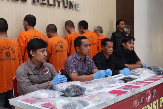 Dari 12 tersangka yang diamankan, 7 orang merupakan pengguna, sementara 5 lainnya diduga sebagai pengedar narkotika jenis sabu. Para pelaku ditangkap di berbagai lokasi di Kecamatan Tanjungpandan dan Sijuk, Kabupaten Belitung.