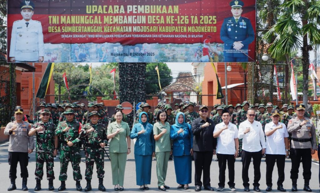 Mojokerto, wartakum7.com. – Upacara pembukaan TNI Manunggal Membangun Desa (TMMD) ke-126 Tahun Anggaran 2025 secara resmi digelar di Pendopo Graha Maja Tama (GMT) dan halaman kantor Pemkab Mojokerto, Jalan Ahmad Yani Nomor 16 Kota Mojokerto, Jawa Timur, Rabu (08/10/2025).